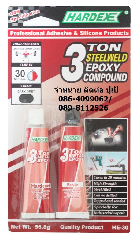 จำหน่ายปลีกส่ง ปูเป้ 089-811-2526 , 086-409-9062 Line: poupelps สินค้า HARDEX 3-TON METAL EPOXY อีพ๊อกซี่โลหะ รับน้ำหนักได้ถึง 3 ตัน สำหรับยาแนวปะเหล็ก เชื่อม โป๊ว แทนการเชื่อมด้วยลวดเชื่อม